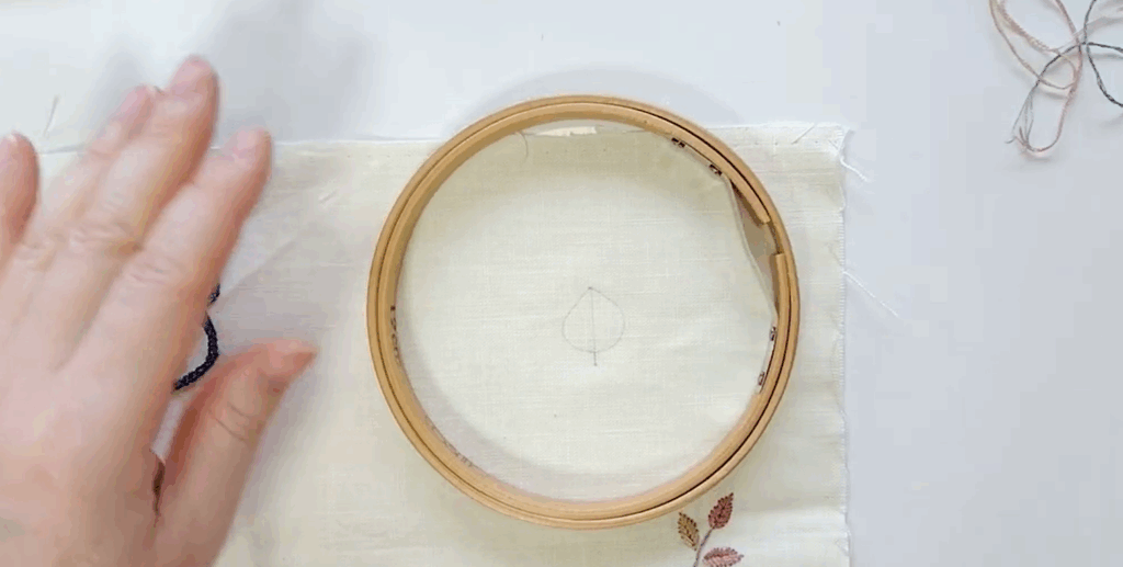 💡コツ:①糸がたるまないように、布を刺しゅう枠にしっかり張って。